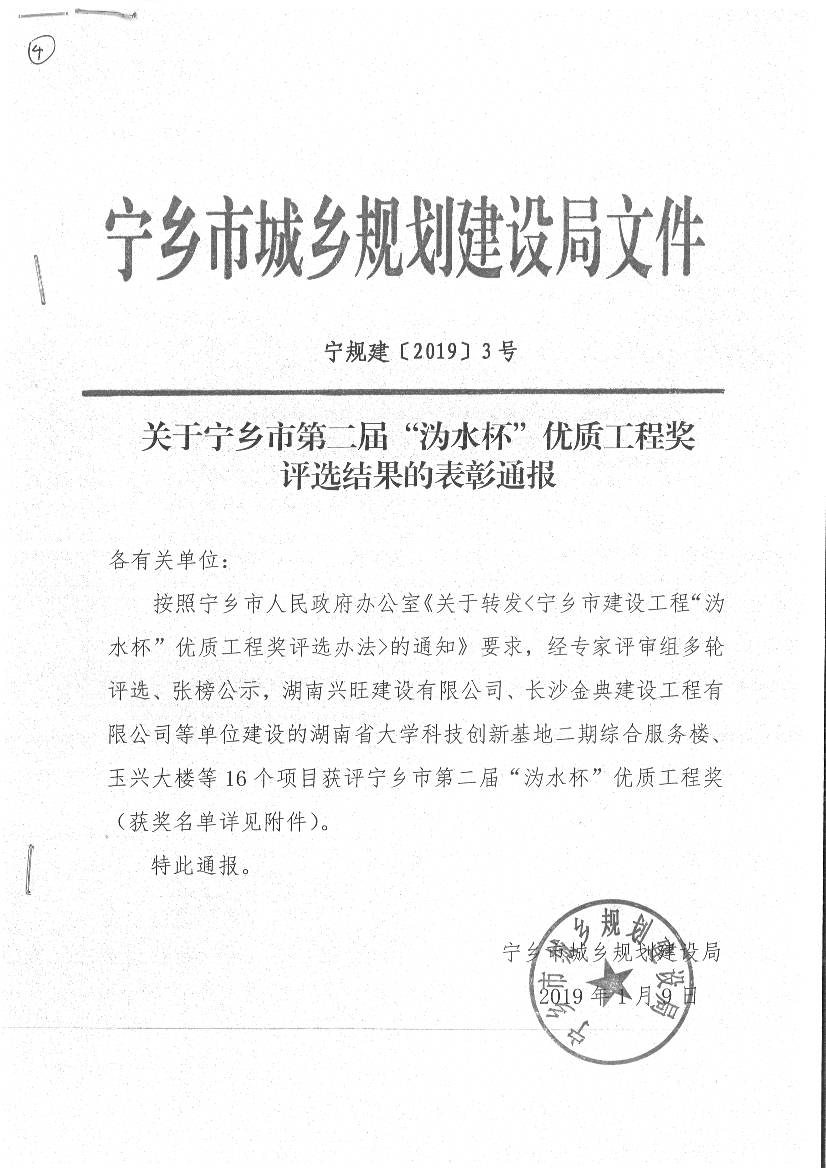 關(guān)于表彰2019年度寧鄉(xiāng)市建筑業(yè)先進(jìn)企業(yè)的決定